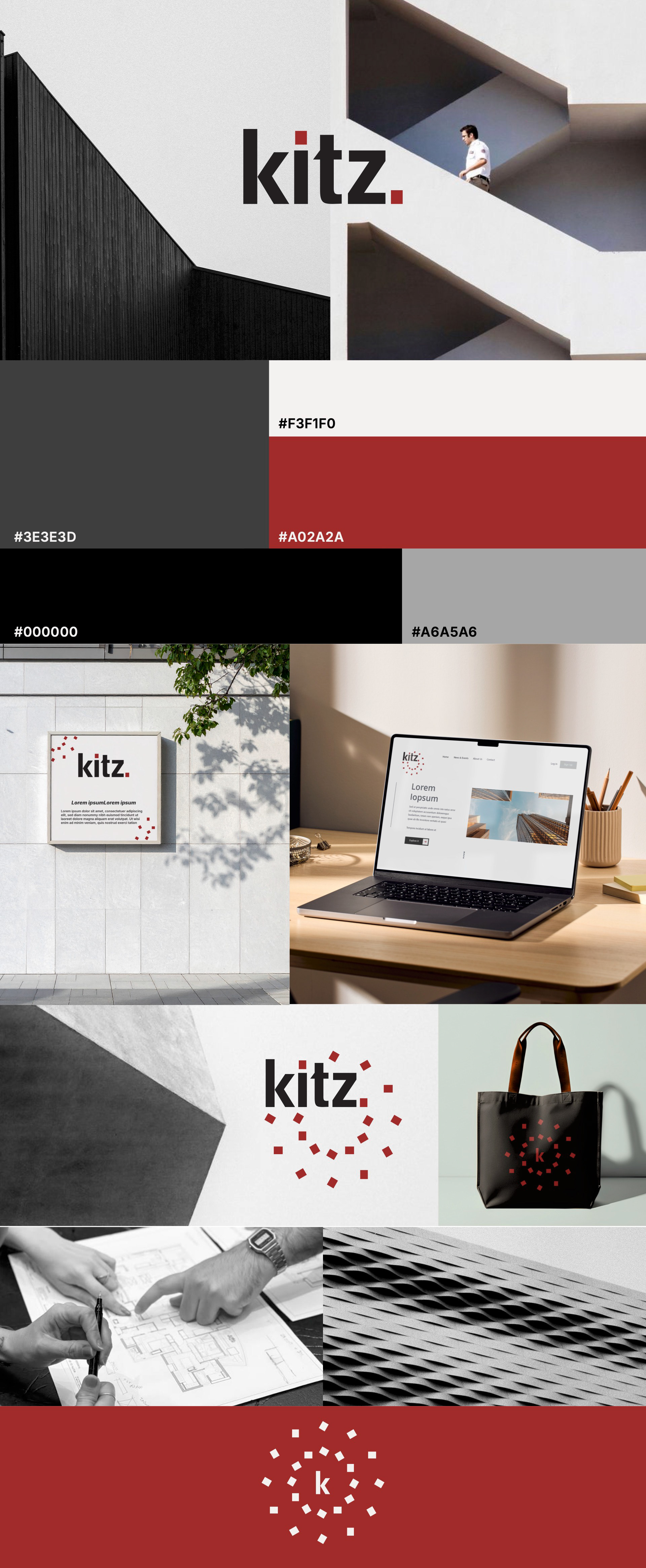 Design modular para espaços que vivem e se transformam. KITZ é uma incorporadora que nasce com um olhar contemporâneo sobre morar, viver e investir. Criamos uma identidade visual baseada em formas modulares, tipografia sólida e uma paleta que une preto, branco e toques de bordô, trazendo contraste, sofisticação e personalidade. O logotipo, centrado no “K”, se desdobra em padrões geométricos que refletem a flexibilidade dos empreendimentos. Um projeto visual que traduz arquitetura em ritmo, marca em estrutura, imóvel em movimento.